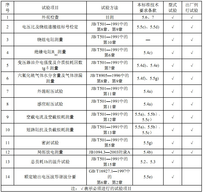 b)制造廠應在企業標準或技術條件中提出無局放試驗變壓器的空載電流、空載損耗、短路阻抗百分數、負載損耗和額定電壓比規定值。制造廠也可與用戶協商提出這些參數的協議值。
